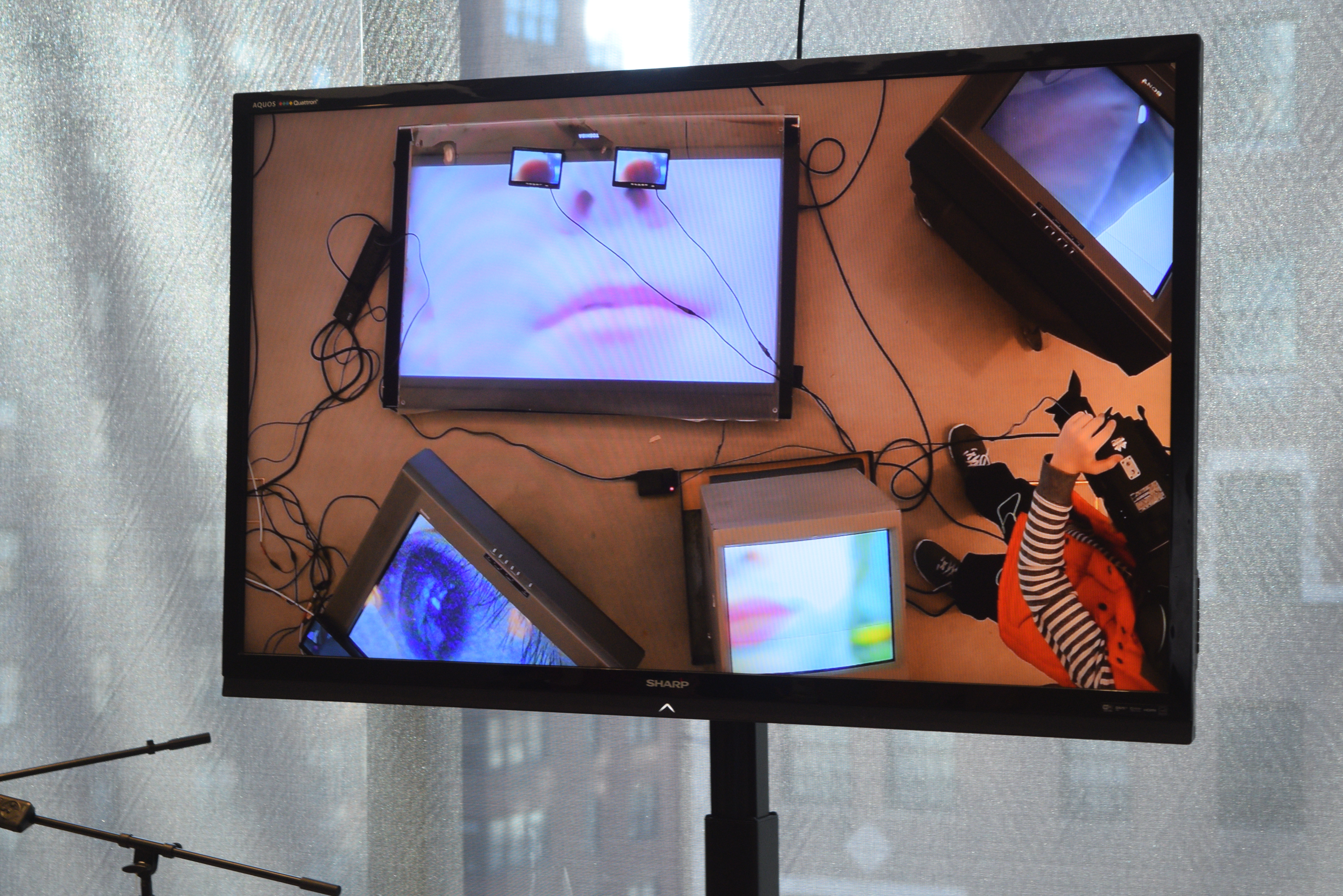 Description: In 2014, the Asia Society Museum invited me to design and lead a hands-on workshop exploring ideas and materials related to Nam June Paik’s “Family of Robot” video sculptures as part of their public programming surrounding the exhibition “Nam June Paik: Becoming Robot.” Following a tour of the gallery, I led participants through a collaborative design challenge to build a series of increasingly complex video creatures using multiple cameras, looping media players, and displays.